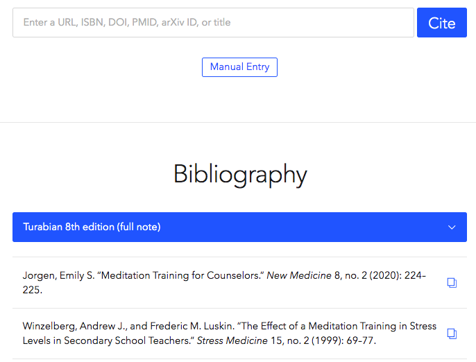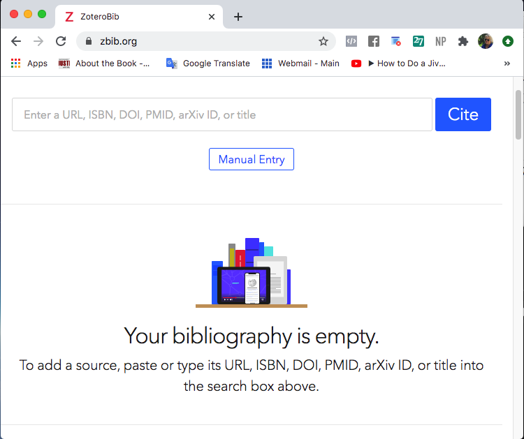 You can also select "Manual" entry if you prefer. Manual entry is particularly useful for printed books and articles.