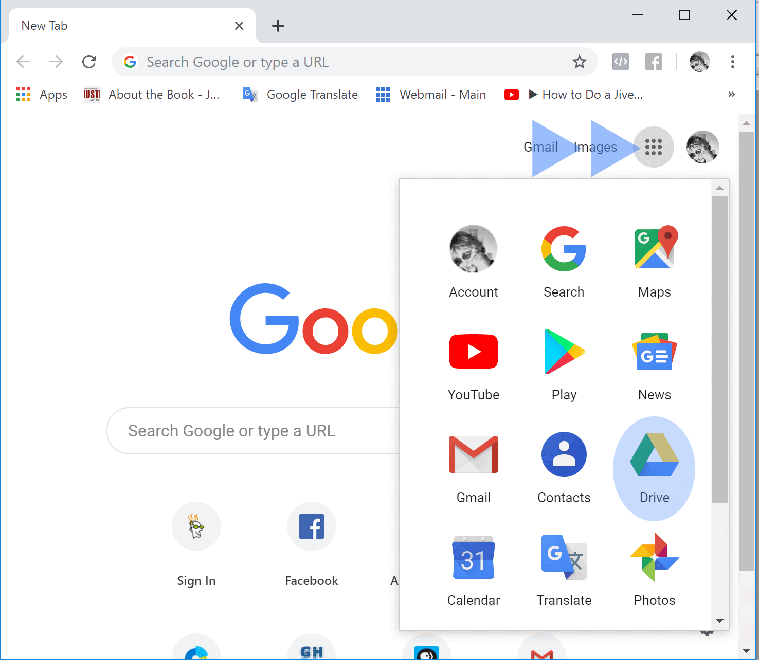 1. Start Chrome, and choose Drive from your Google Apps panel.