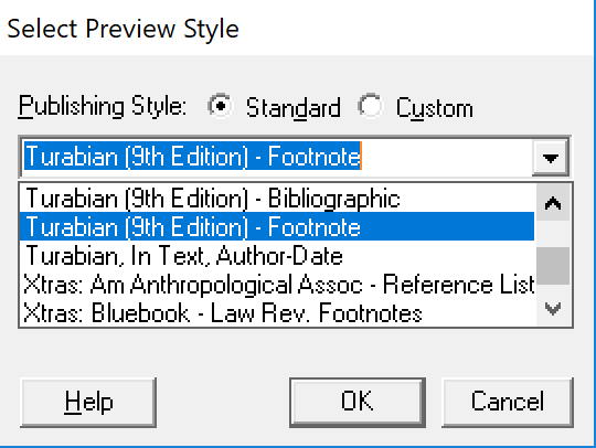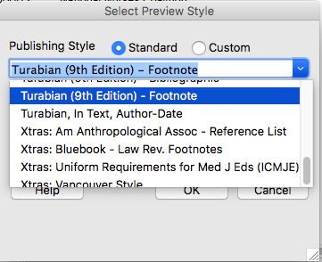 We have selected Turabian Footnotes in our example.