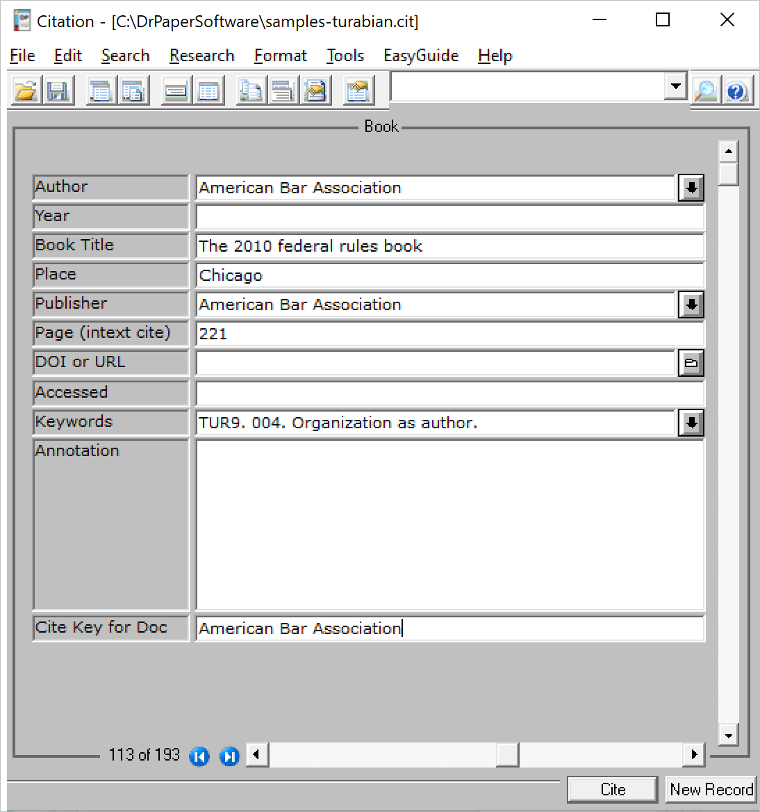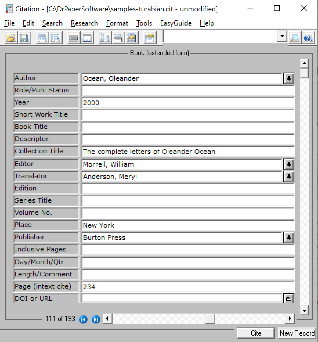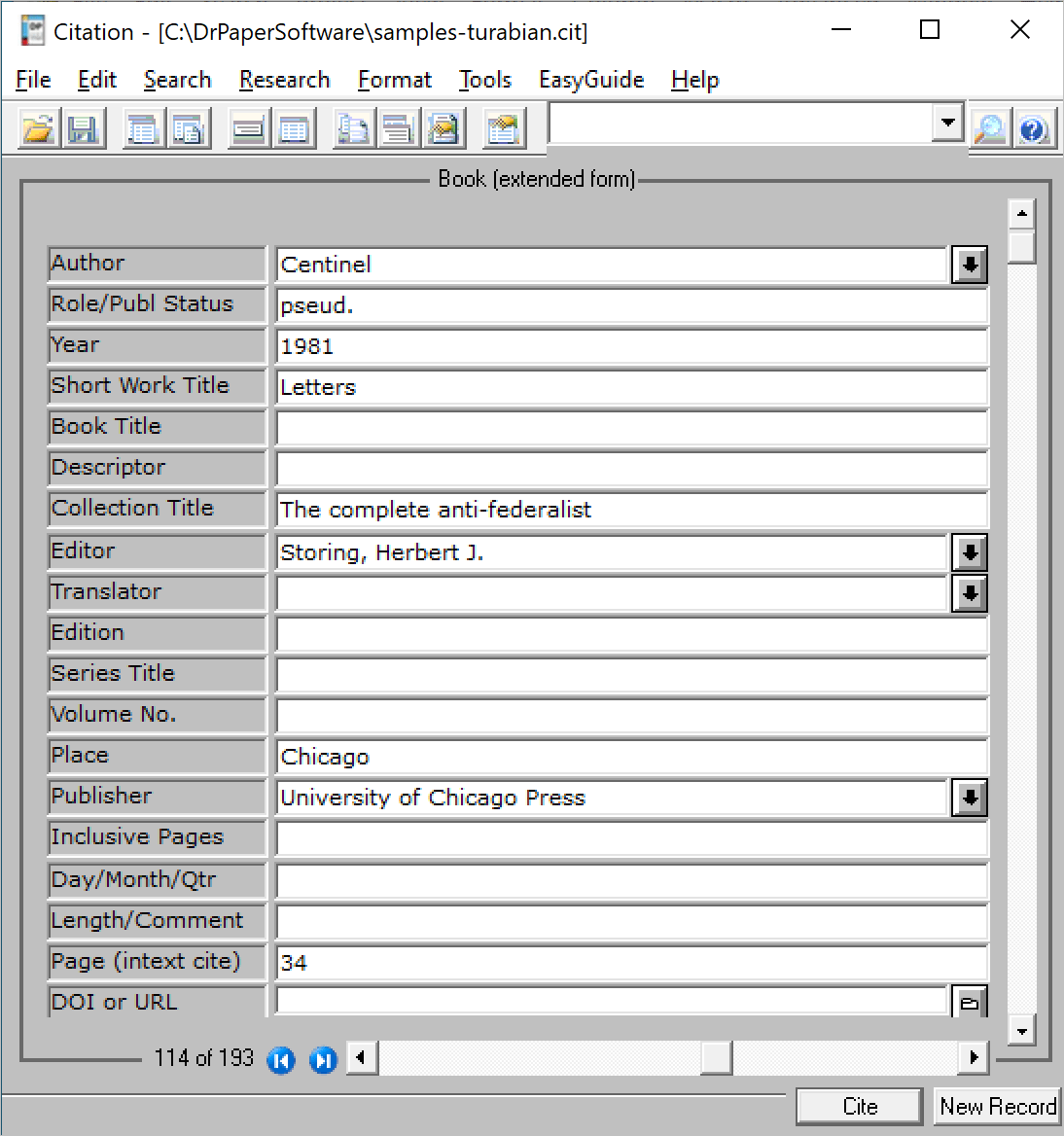 CiteWrite Citation Record