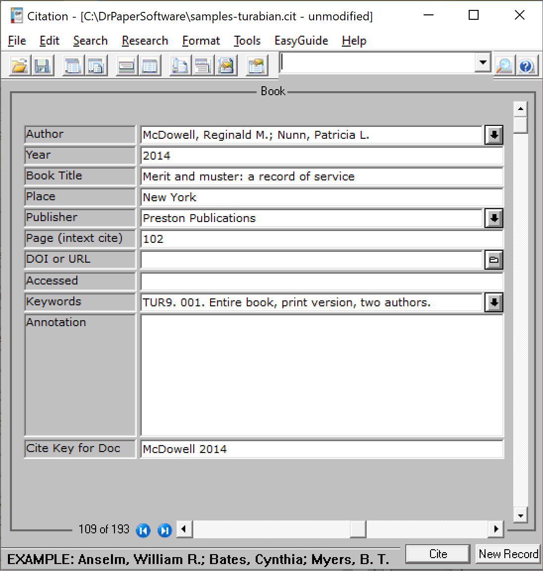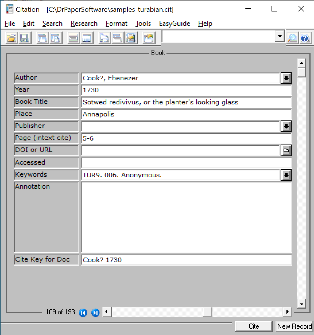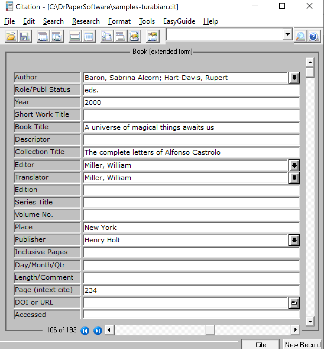 CiteWrite Citation Record
