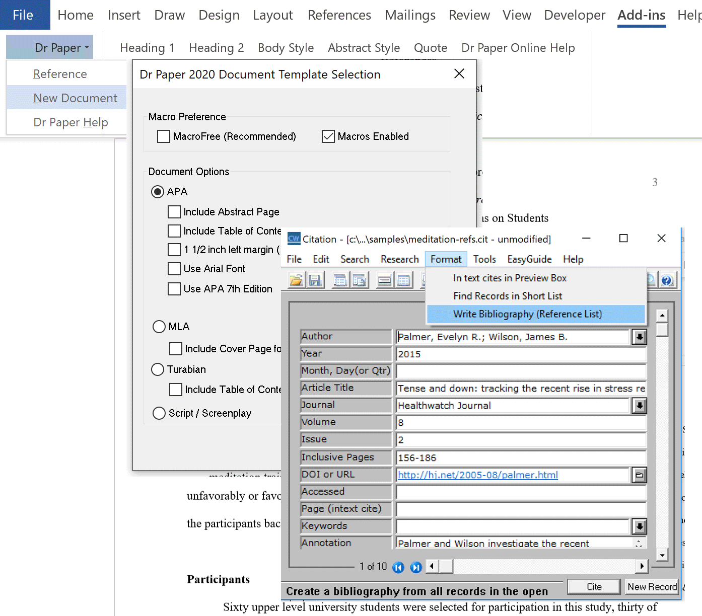 works with Microsoft Office 365, Mac and Win, and Google Docs. Supports APA 7th edition, MLA 8th edition, and Turabian 9th edition. |